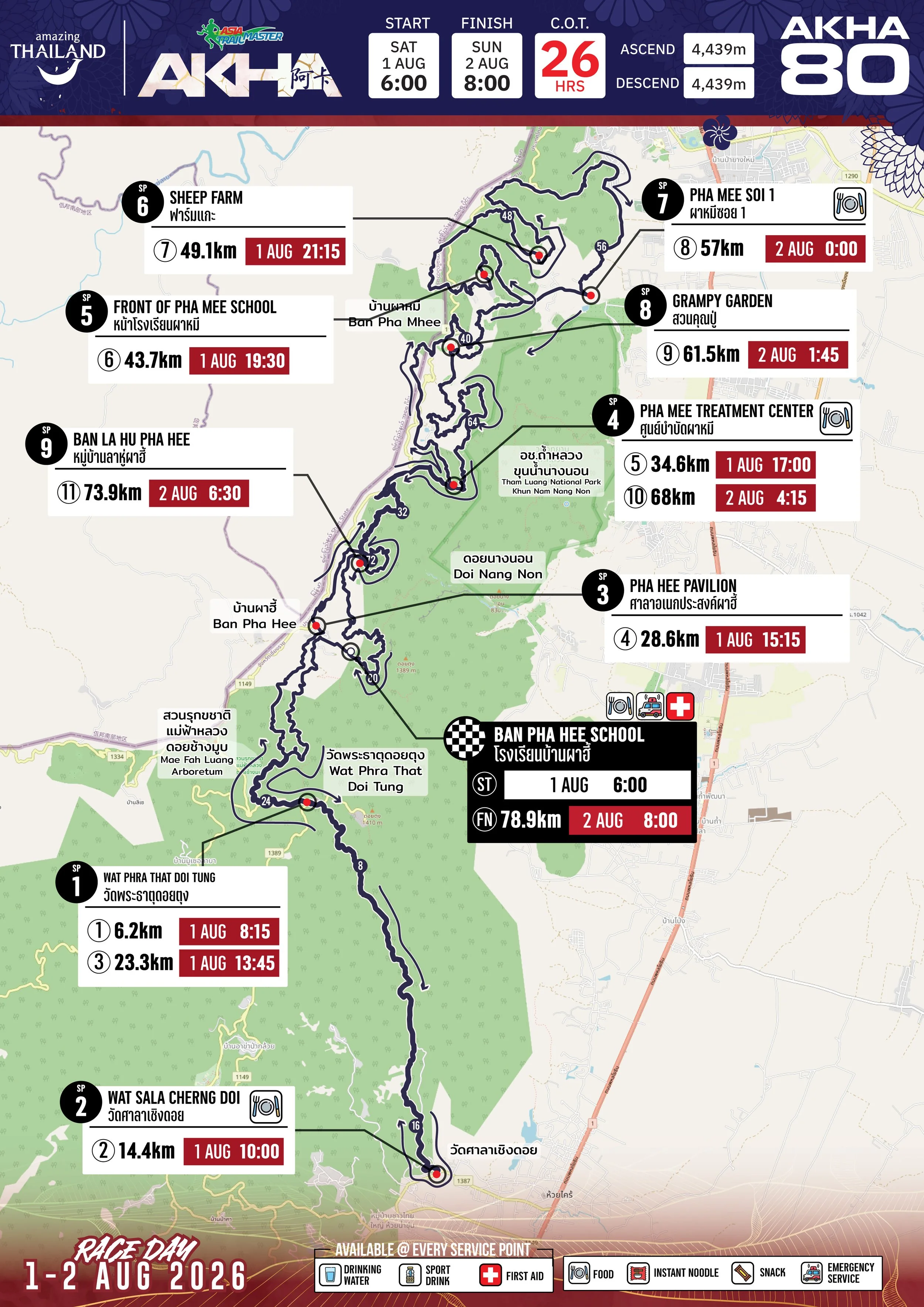 Akha Trail takes place in the far north of Thailand in Chiang Rai Province, bordering with Myanmar. The 80km is a very scenic trail course featuring local tourism highlights. Good old-fashioned trail running.