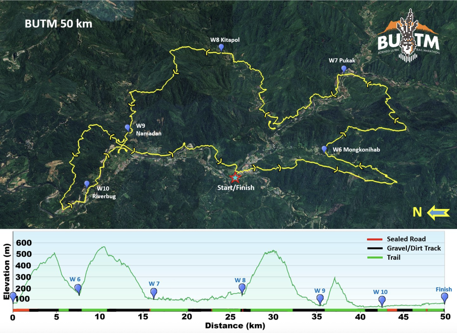 Borneo Ultra Trail Marathon, in short BUTM, is really no longer the “little sister” of TMBT. Organised by the same team, BUTM is a wonderful event in itself taking place in a different part of Sabah, in and around Kiulu. For international runners the set-up is very similar: you fly into Kota Kinabalu and can base yourself in the city. Shuttle busses will take runners to the starting line at night. The 100km and 50km races start together at 6 am.