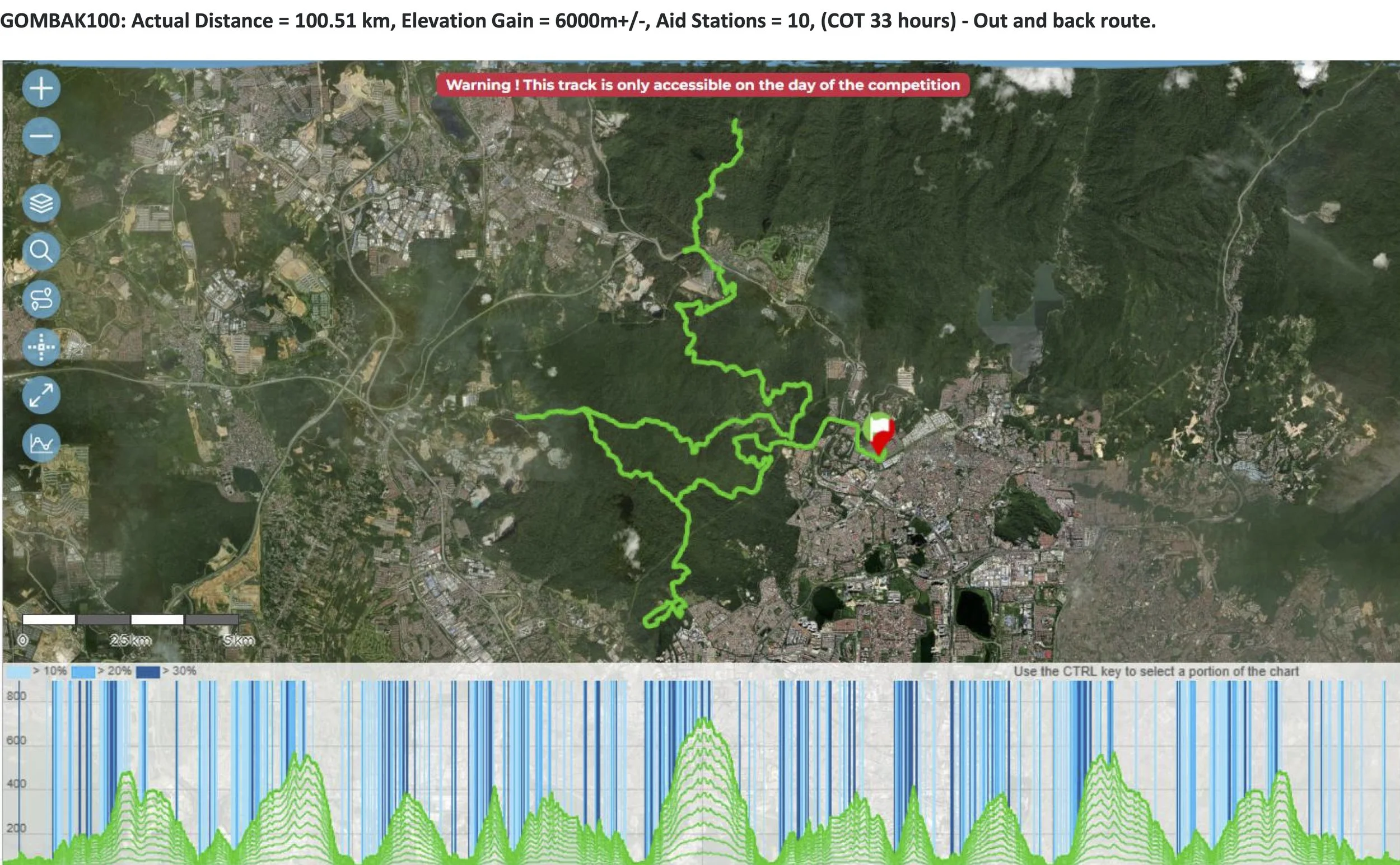 Trail des Gombak is tougher than many expect. The 100 km has an approximate elevation gain of over 6000 hm, which already puts it in the ‘rather serious’ category. The start of the race is also an unusual 2 am on Saturday early morning. The 50km will be flagged off two hours later at 4 am and features about 3200 metres of elevation gain. Yes, you are close to Kuala Lumpur but it is surrounded by hills!
