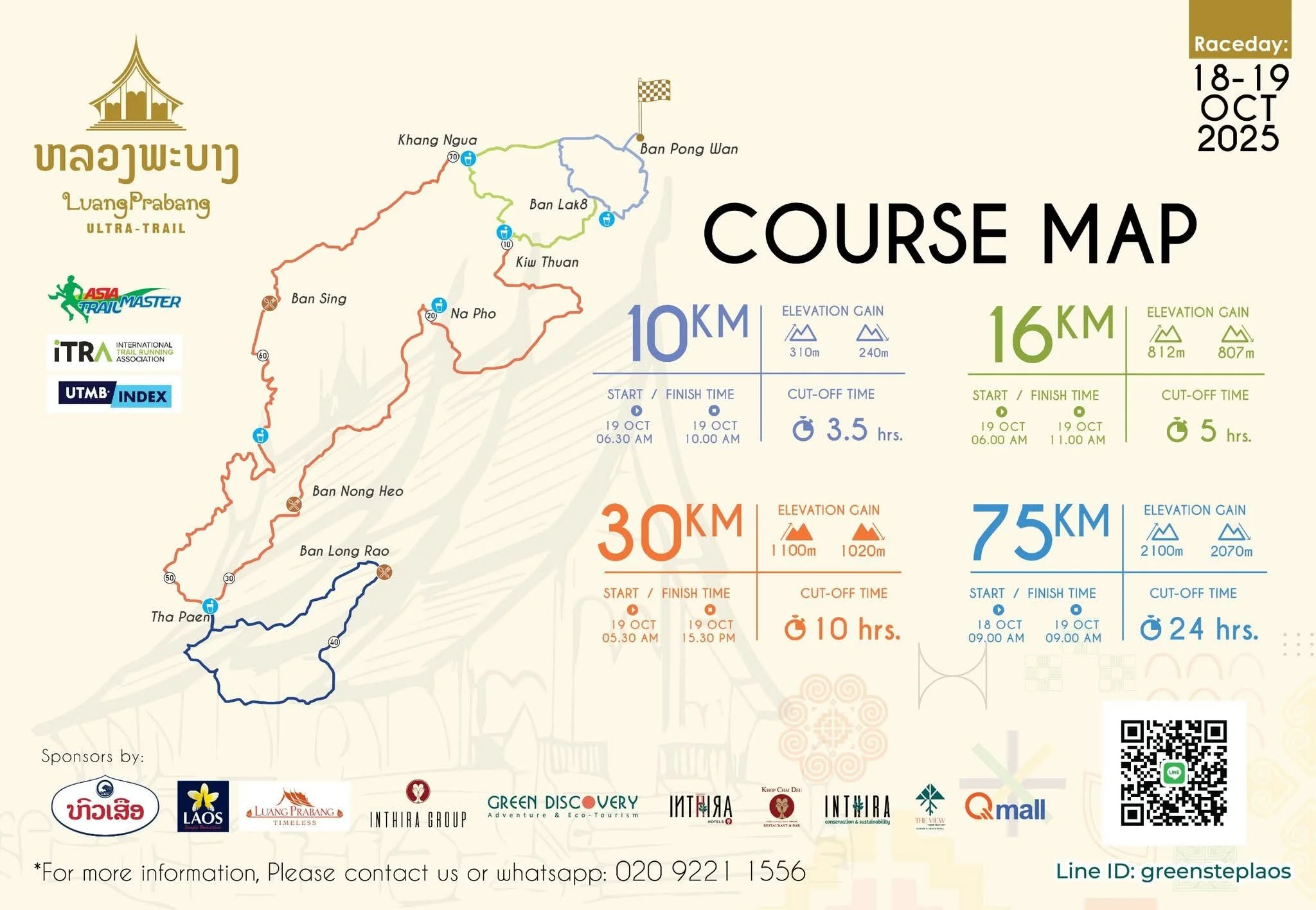From the same team that brings you the V Trail in Vang Vieng since 2018, here is the second edition event in a rather unique setting: Luang Prabang, a UNESCO World Heritage City and former capital of Laos. On the programme are four distance categories of which the 75km is the one that matters for both the ATM Championship Ranking and the Grandmaster Quest.