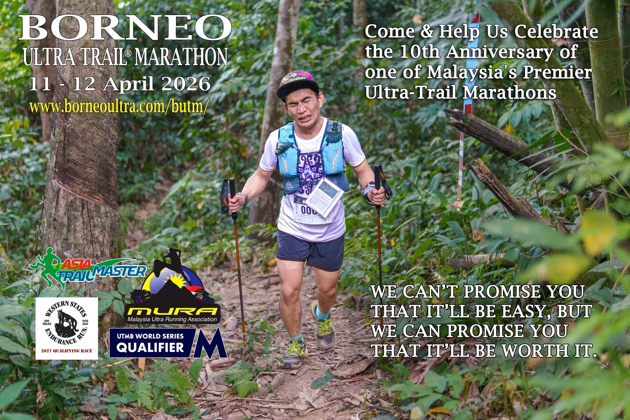 Borneo Ultra Trail Marathon, better known as BUTM, is celebrating its tenth anniversary this weekend in Kiulu, Sabah, Malaysia. Formerly referred to as the ‘little sister’ of TMBT, BUTM has developed into an early season classic of its own right that plenty of trail runners want to add to their finisher collection. Taking place later than usual this season, BUTM has the typical Sabah ingredients: hot and humid weather during a tough, but fantastic run through hilly rainforests and river valleys with a great vibe of local hospitality and support.
