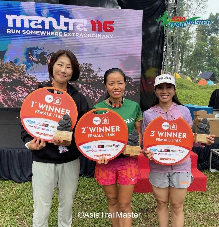 The women’s 100km ultra was dominated by Hong Kong’s Man Yee Cheung. Just two weeks after her miler on Fuji in Japan, the tall Hong Kong star seemed pretty well recovered and was a class on her own in Bali. She took her victory, her second in ATM after VMM 100 in 2023, as fifth overall in 21h13. Earlier this year she also finished second in the 9 Dragons. With a total of 950 ATM Championship points in two races, she might have already done enough to qualify for the Championship Final in Vietnam this season.